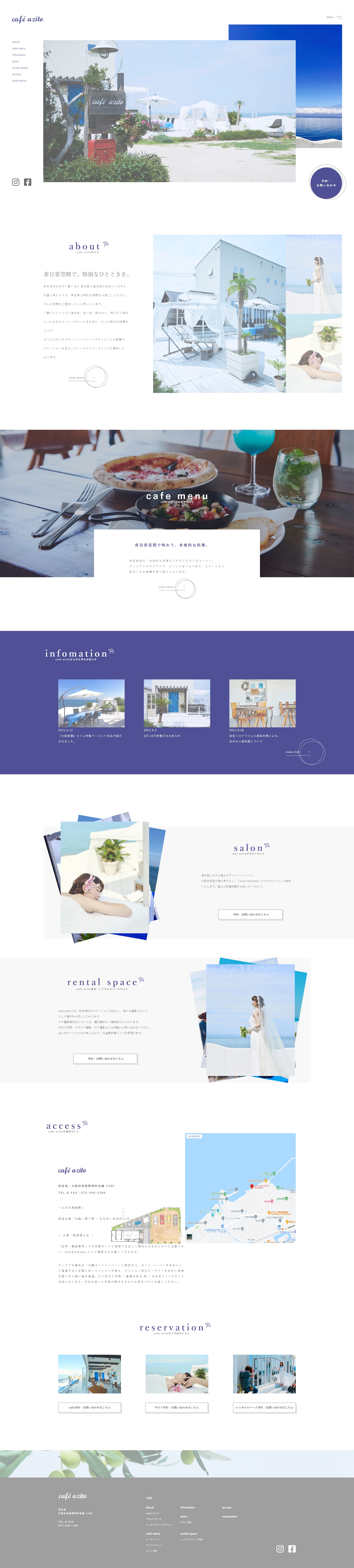 サイトのメインカラーはお店のロゴに合わせて設定しました。カフェアジトの特徴であるリゾートのような雰囲気を生かすべく、余白を多めに設定することで爽やかで洗練されたデザインを目指しました。お店の素敵な写真も映えるようなサイトになったと思います。