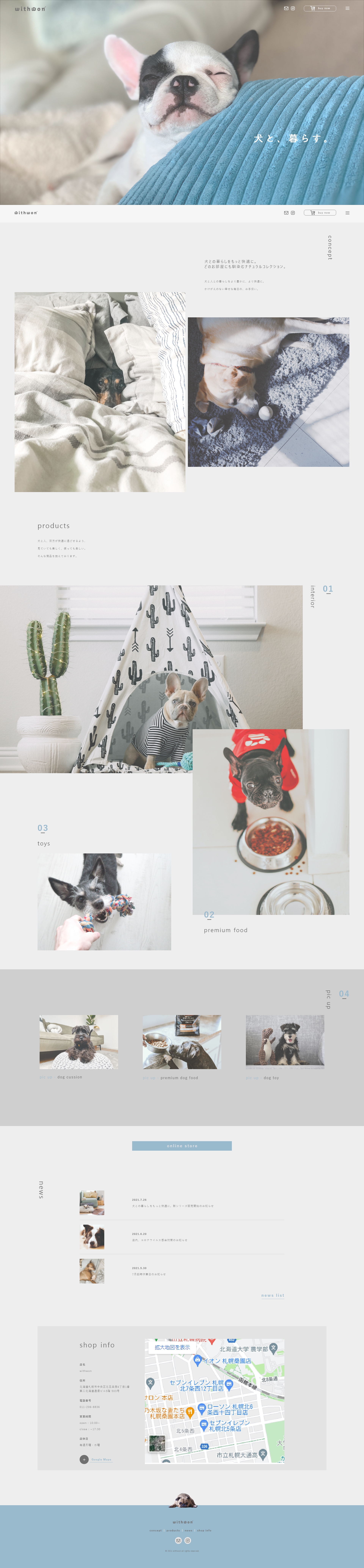 どんなお部屋にも馴染むナチュラルテイストなアイテムを中心に取り揃える。サイトもお店の雰囲気に合うよう、シンプルでナチュラルな印象を目指しました。お店のロゴも犬に見立ててデザインしたので、是非見て頂きたいです。